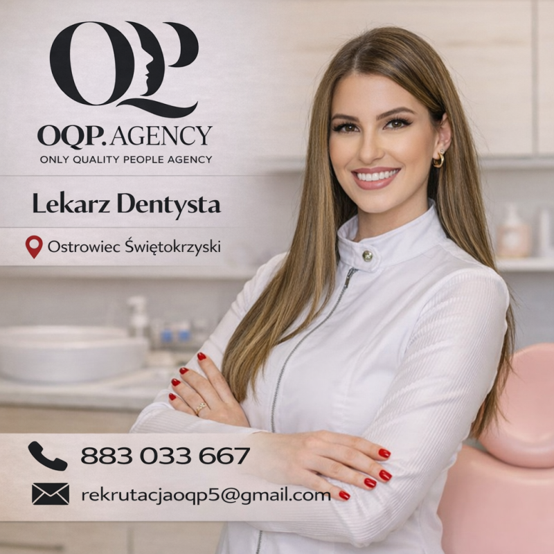 Jak aplikować? 📧 Wyślij swoje CV na adres: rekrutacjaoqp5@gmail.com 📞 Skontaktuj się telefonicznie: 883 033 667 Klauzula RODO (prosimy wkleić do CV) „Wyrażam zgodę dla OQP.agency Sp. z o.o. na przetwarzanie podanych przeze mnie w dokumentach aplikacyjnych danych osobowych dla potrzeb związanych z realizacją procesu rekrutacyjnego na stanowisko Lekarza oraz przyszłych, nieokreślonych na obecnym etapie procesów rekrutacyjnych, które mogą odbyć się w ciągu najbliższych 5 lat. Każdą z wyrażonych wyżej zgód mogę w każdej chwili cofnąć. Administratorem danych osobowych jest OQP.agency Sp. z o.o. z siedzibą w Warszawie (01-142), ul. Sokołowska 7/8.”