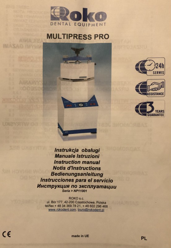 Roko Multipress Pro, automatyczna wtryskarka do tworzyw termoplastycznych, przeznaczona do wykonywania protez dentystycznych metodą wtrysku bezpośredniego. -Urządzenie zapewnia precyzyjną kontrolę procesu wtrysku dzięki nowoczesnym systemom pomiarowym. -Zostało zaprojektowane z myślą o trwałej konstrukcji i korzystnym stosunku ceny do funkcjonalności. -Jest to urządzenie specjalistyczne używane w laboratoriach techniki dentystycznej.